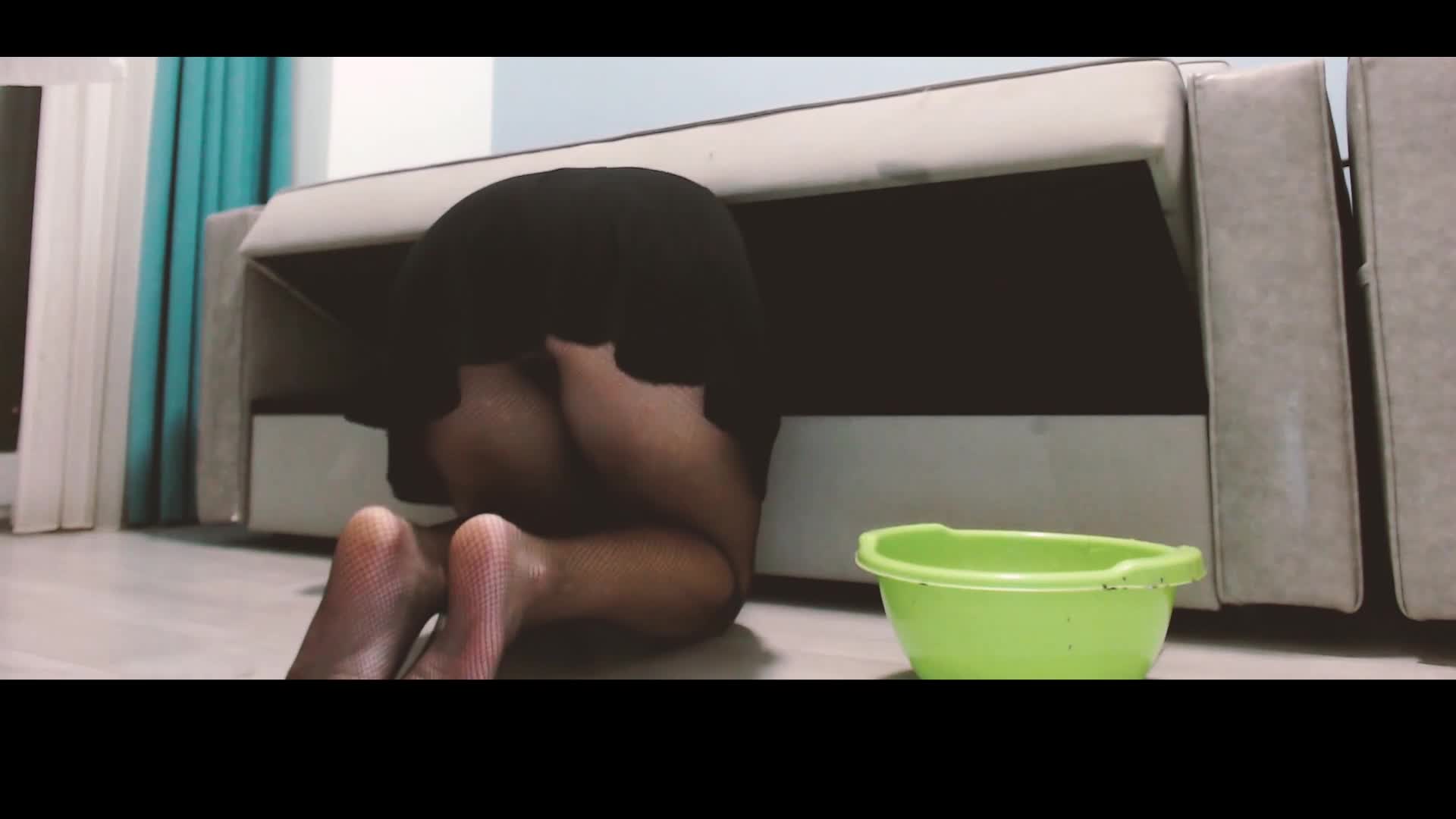 The maid got stuck while cleaning and got a portion of sperm